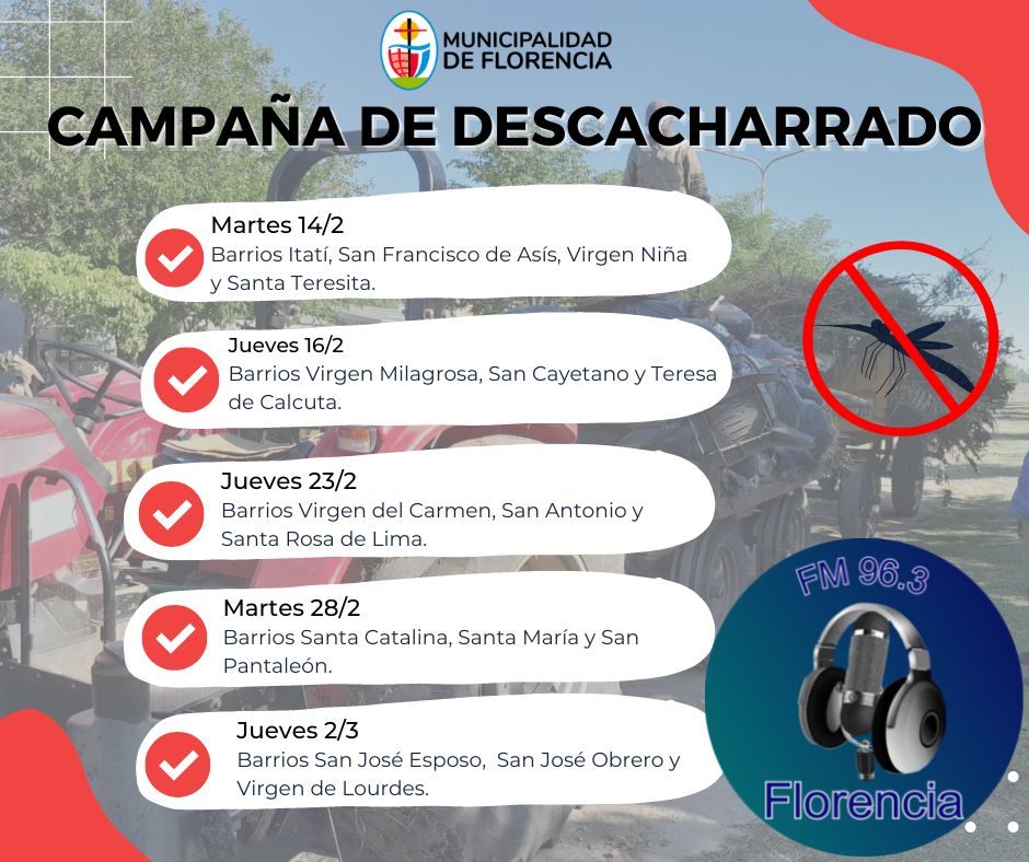 La Municipalidad de Florencia informa las actividades del día 13 de febrero.