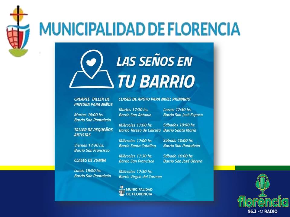 La Municipalidad de Florencia informa acerca de las actividades del día 29 de octubre.